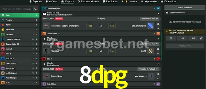 A aposta 8dpg oferece aos jogadores a experiência mais conveniente de apostas em eSports!